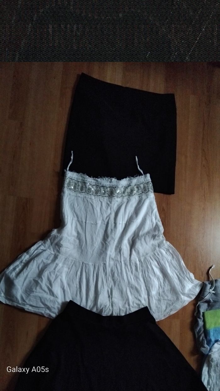 22 vetements avec d autres qui sont offerts Multimarques gemo kiabi emonite affibel etc Pulls débardeurs tee-shirts shorts jupes robe veste et tunique J offre un lot de vêtements avec ce lot photo à la demande Une jupe la fermeture ne s ouvre que jusqu'à la taille défaut déjà présent à l achat elle est neuve #valpotin40femme