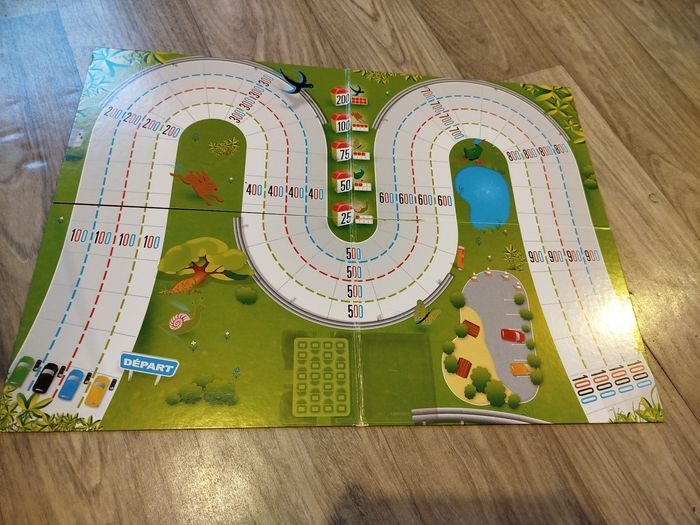 Jeu de société milles bornes sur plateau Age 5 ans et plus Le plateau de jeu est un peu abîmé voir photo mais ça n'empêche pas de jouer malgré tout