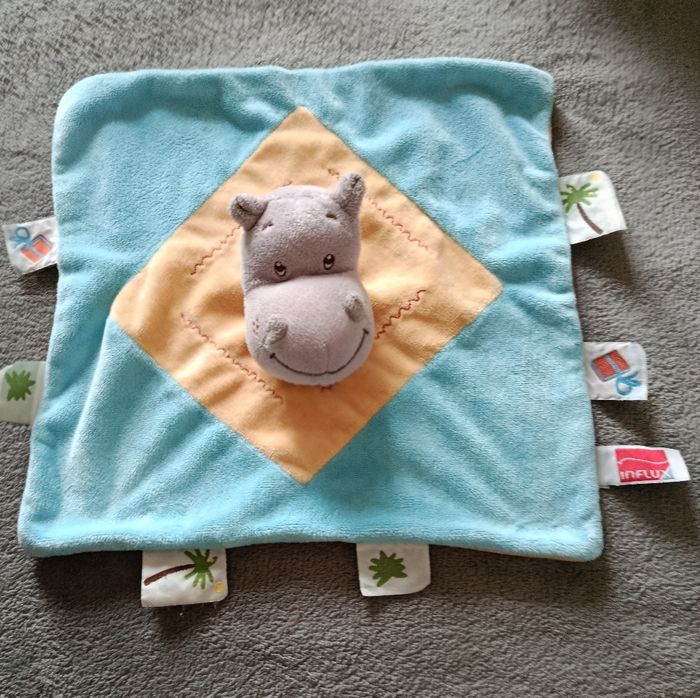 Doudou carré plat bleu et jaune _ Hippopotame _Influx - photo numéro 1