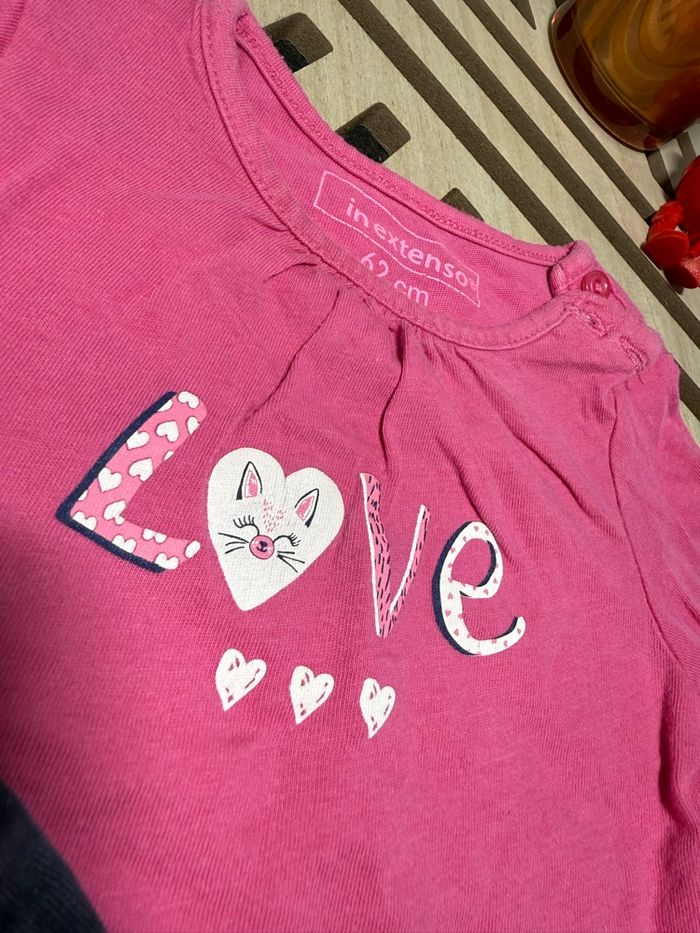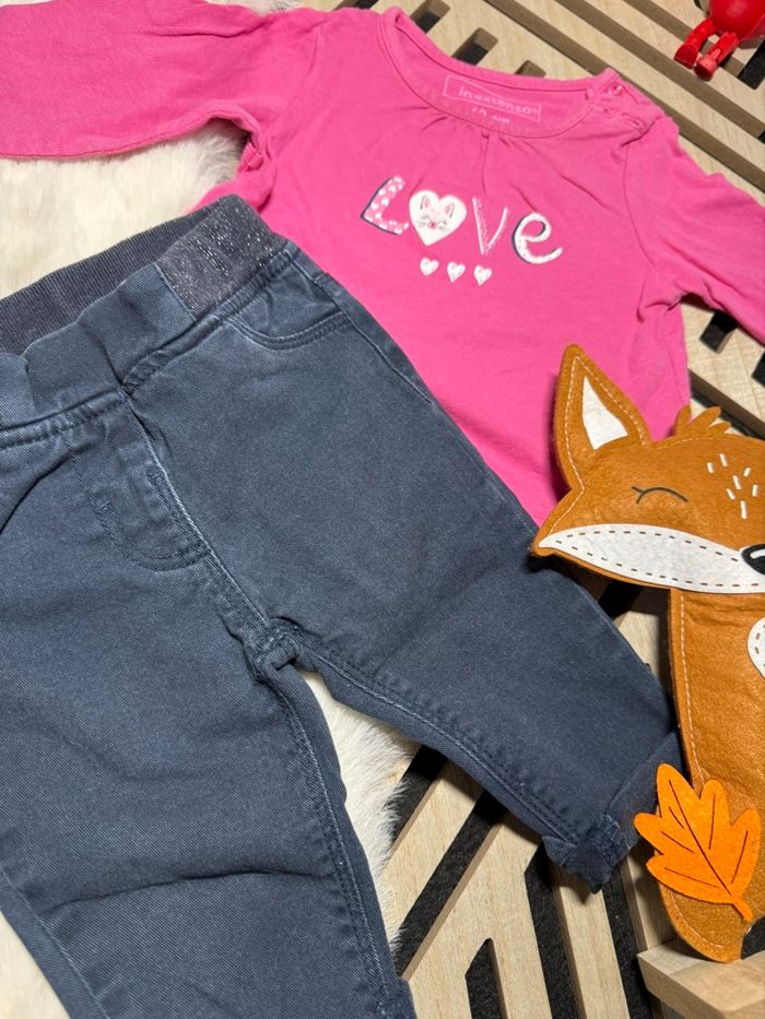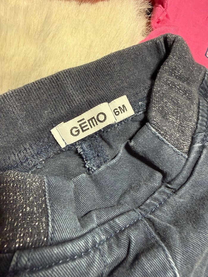 Ensemble composé d’un jeans gemo taille élastique brillante très confortable et d’un pull fin in extenso. Taille 6 mois - très bon état
