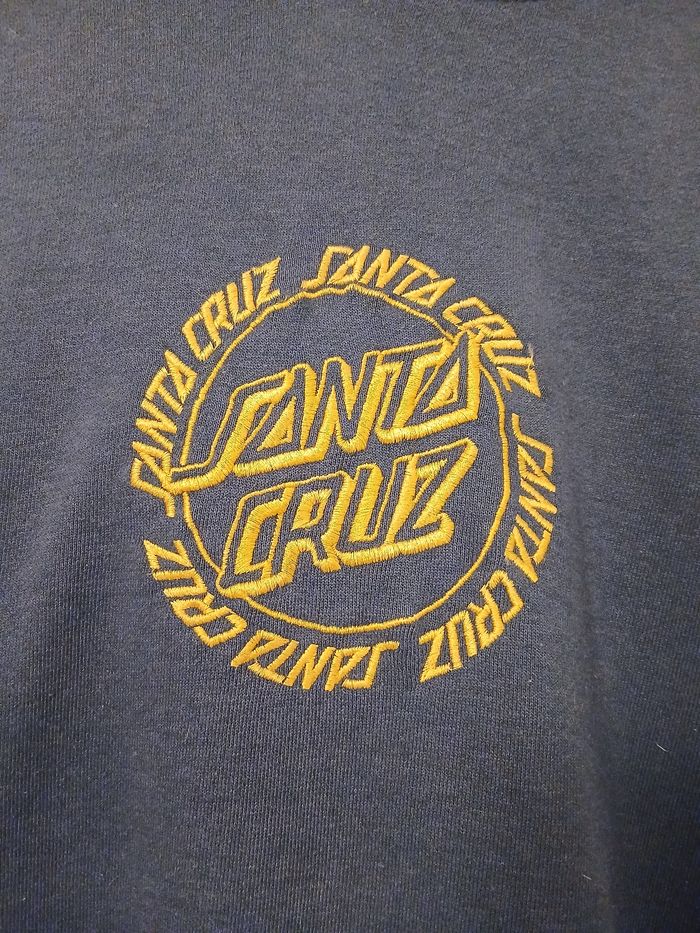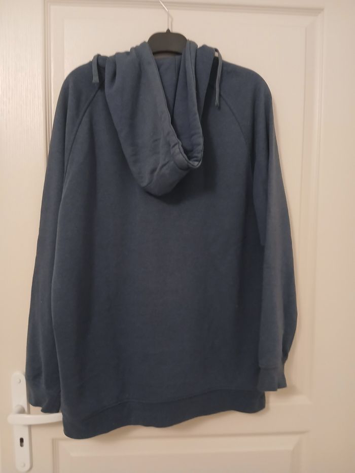 Sweat à capuche unisexe, bleu marine et logo jaune, en coton et polyester, (Valeur 69 €). 42 cm de largeur des épaules 58 cm de largeur des aisselles 75 cm de longueur
