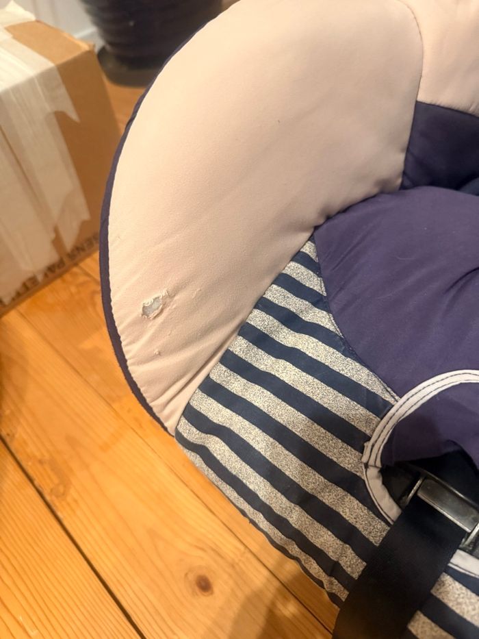 Siège auto pour enfant, il y a un tout petit trou vers l’assise, voir photo