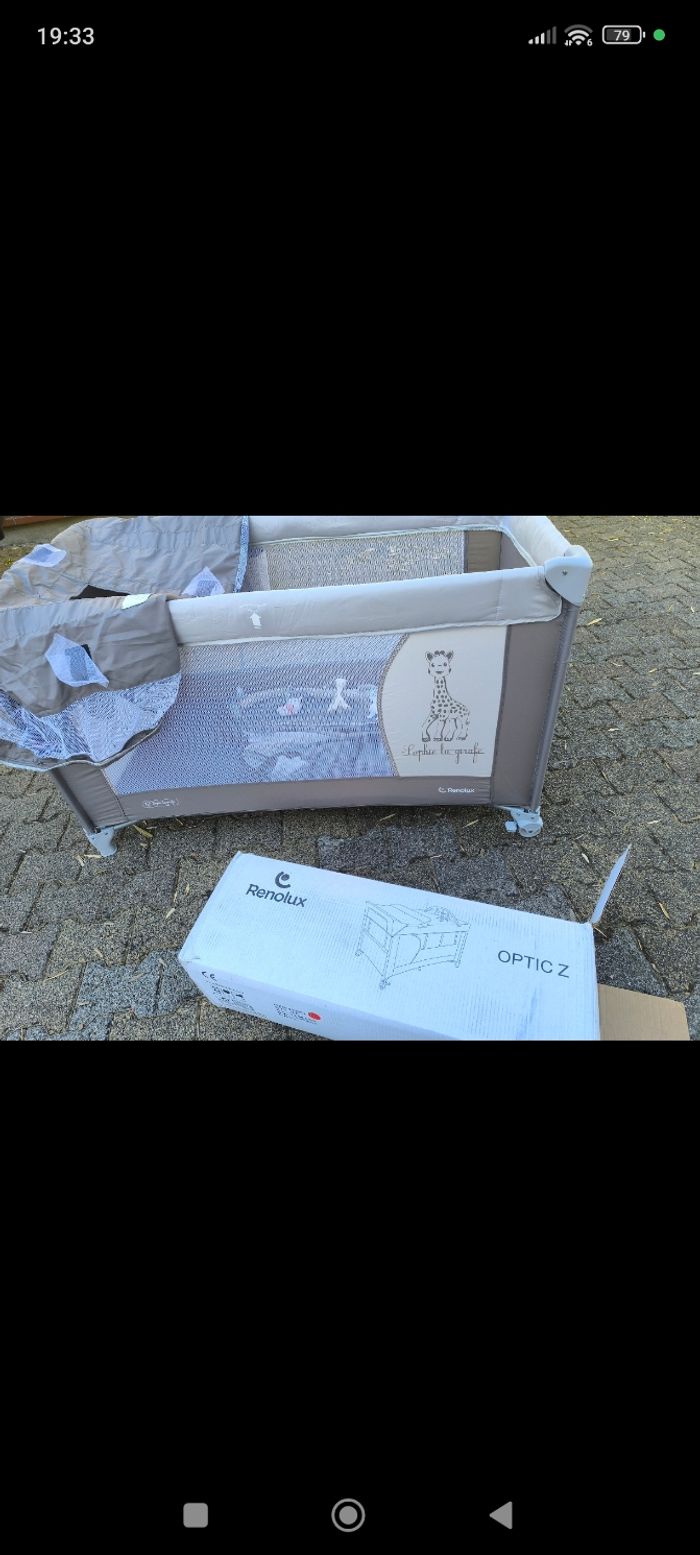 Lit bébé parapluie de voyage Sophie la Girafe Renolux Optic Z comme neuf - photo numéro 1