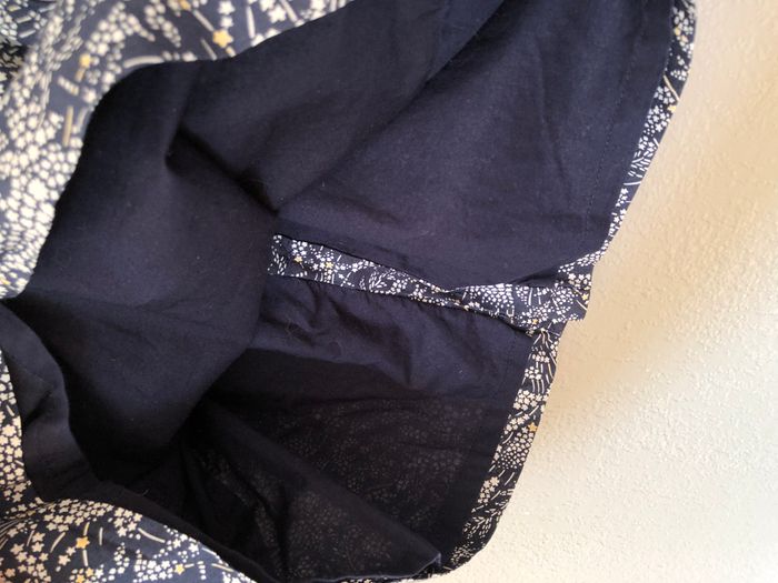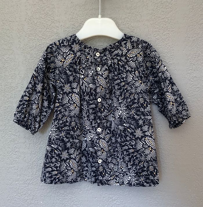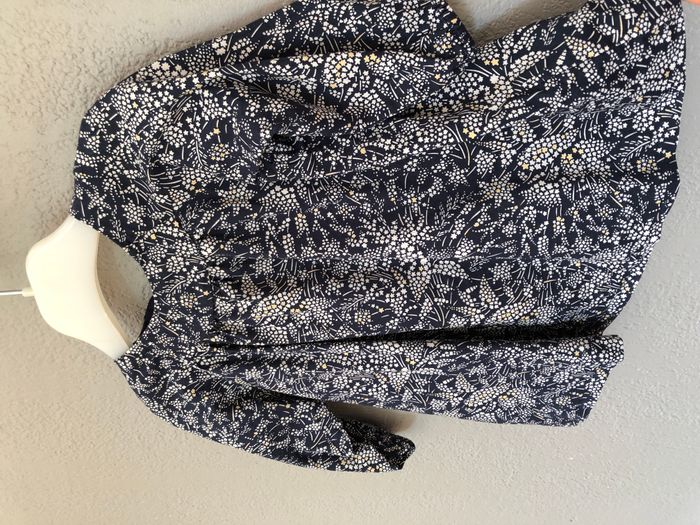 Robe très courte Jacadi, Taille 6 mois/67 cm, Mi-saison/ hiver, En coton, Doublée, Manches longues. De couleur bleu marine, motifs fleurs faites en petites étoiles blanches et d’autres légèrement dorées. Ouverture intégrale, par des boutons en nacre estampillés Jacadi, tout le long du dos. En excellent état, pas de signe d’utilisation. Ni trou, ni tache, ni décoloration. 🌸 Vous aimez cet article ? N’oubliez pas de visiter le reste de mon dressing en filtrant les tailles.