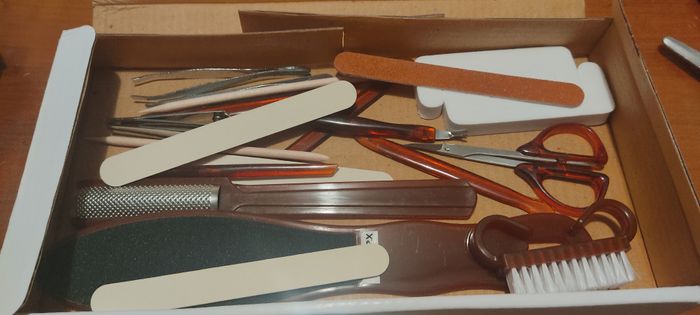 Boite de 20 articles pour la beauté : coupe-ongles, limes à ongles carton et métal, bâtonnets en bois, brosse à ongles, écarte orteils, ciseaux, râpes... L'ensemble neuf encore sous blister et boite d'origine. Disponible à Massy 91, envoi possible