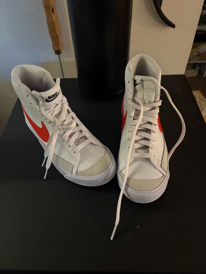 ✨ État : neuves, jamais portées 📏 Taille : 38 🎨 Couleur : blanc avec logo rouge 👣 Modèle montante, confortable et tendance 📦 Vendues sans boîte 📮 Envoi rapide et soigné 💬 N’hésite pas à me contacter pour plus d’infos !