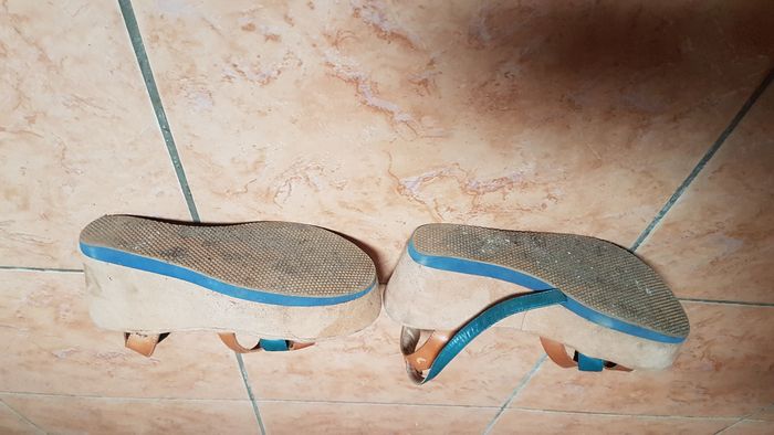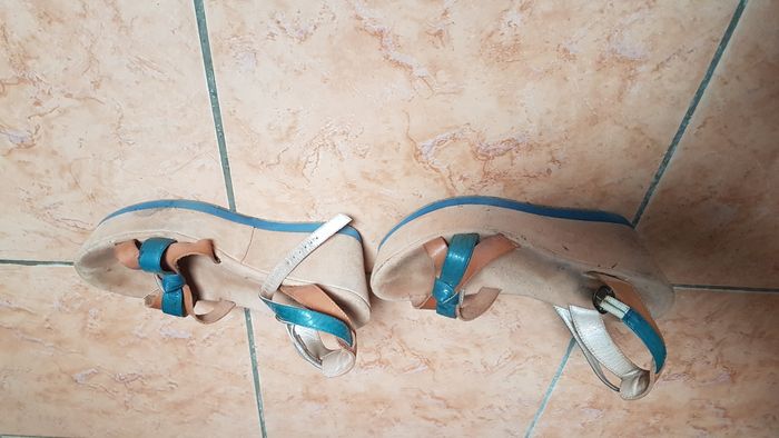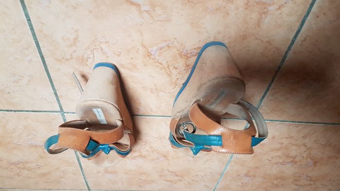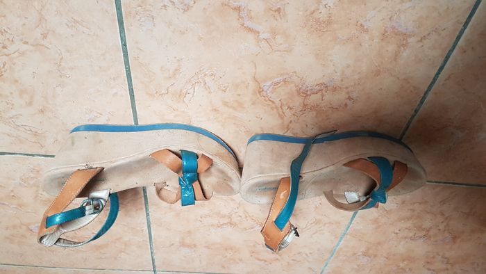 Nu pieds femme Taille 38 Couleur marron et bleu Semelle avant 5 cm Semelle arrière 9 cm A brides Confortable Marque Toscablu Shoes