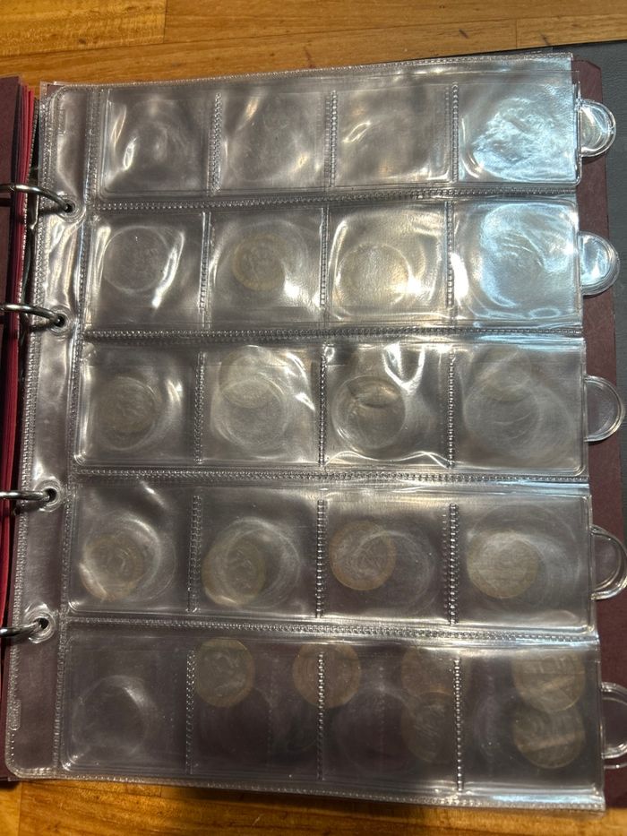Classeurs numismatiques avec 300 rangements et de nombreuses monnaies à l’intérieur Photo pour description. Envoi rapide