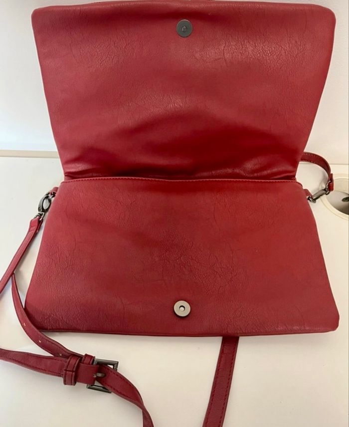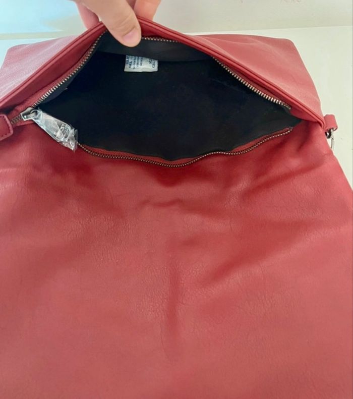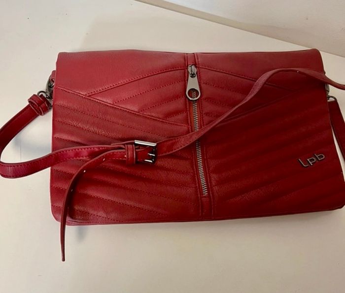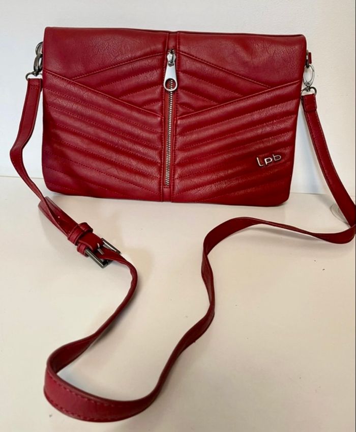 sac pochette à bandoulière de marque les p’tites bombes neuf sans étiquettes fermeture éclair à l’intérieur et pochette ouverte au dos du sac la fermeture éclair devant le sac est fictive le sac mesure 34 cm de long et 22 cm de haut pour vous donner une idée fourni avec sa pochette de rangement