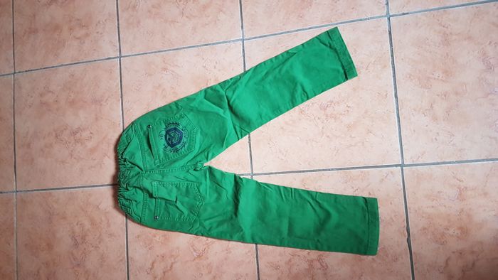 Jeans à pression Monsters garçon Taille 8 ans Couleur vert Monsters sur une cuisse 2 poches avant 2 poches arrière Fermeture éclair et bouton pression Taille élastique avec bouton de resserrage Marque Disney