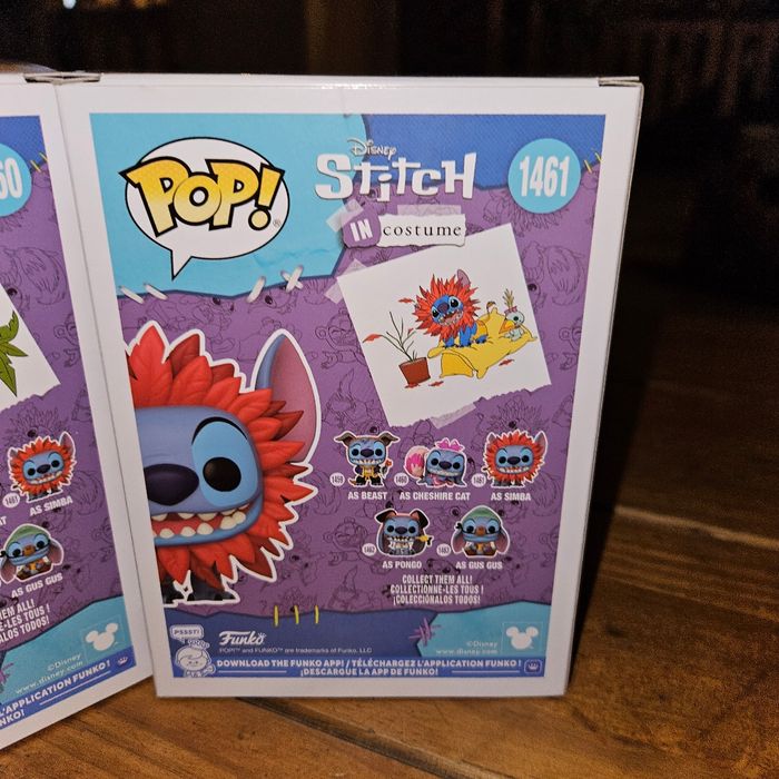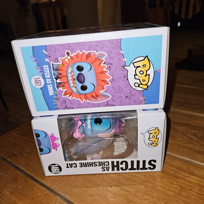 Lot Funko Pop Disney – Stitch in Costume #1460 & #1461 – Cheshire Cat & Simba 🧾 Description Lot de 2 figurines Funko Pop! officielles issues de l’univers Disney, collection Stitch in Costume. Inclus dans le lot : 🐱 Stitch as Cheshire Cat – #1460 🦁 Stitch as Simba – #1461 📦 Boîtes d’origine incluses ✨ Figurines en excellent état 📦 Boîtes en très bon état (voir photos) Lot idéal pour collectionneur Stitch / Disney ou pour un cadeau 🎁 Série très appréciée avec costumes iconiques. 📦 Envoi rapide mais surtout très très soigné Carton dur + papier bulles renforcés 📚 D’autres Funko Pop disponibles sur mon profil, n’hésitez pas à faire un lot.