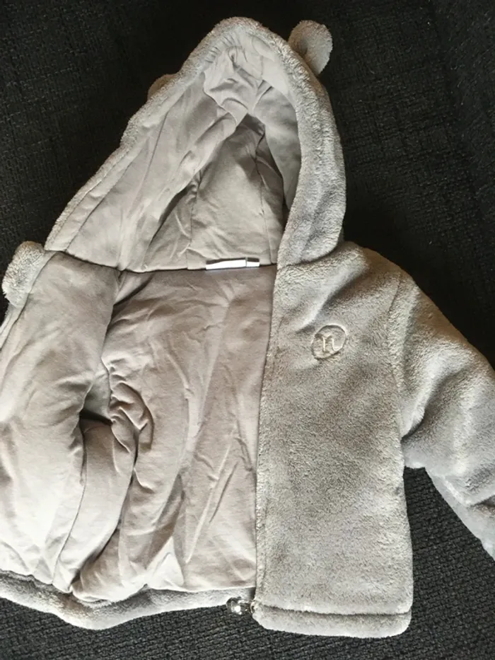 Veste à capuche Noukie’s en matière Groloudoux®, couleur gris clair, taille 9 mois. ✅ Excellent état, comme neuve ✅ Matière ultra douce, chaude et confortable ✅ Capuche avec petites oreilles trop mignonne ✅ Moufles intégrés dans les manches ✅ Fermeture éclair ✅ Petite poche sur le devant Parfaite pour l’hiver, pour garder bébé bien au chaud avec style. 🏡 Maison non fumeur 🚚 Envoi rapide et soigné. 👉 Possibilité de lot, regrouper les achats pour réduire les frais de port et bénéficiez d’une remise