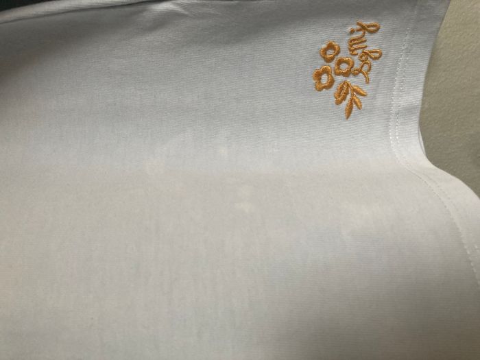 Sous-pull pour fille de la marque Sergent Major en taille 7 ans (122 cm). Ce modèle élégant possède un col Claudine coloris moutarde orné de petites fleurs blanches brodées, ainsi qu'une broderie assortie en bas du vêtement. Le tissu est en bon état général, sans trous ni déchirures. À noter : le vêtement présente plusieurs taches visibles sur le devant et sur les manches (voir photos détaillées). Il reste parfaitement utilisable pour les activités quotidiennes, le jeu, ou comme épaisseur supplémentaire sous un pull ou une robe. #Worryfree_7ans #sergentmajor #souspull #colclaudine #7ans #sergentmajor7ans #modefille #vintedkids #vêtementécole