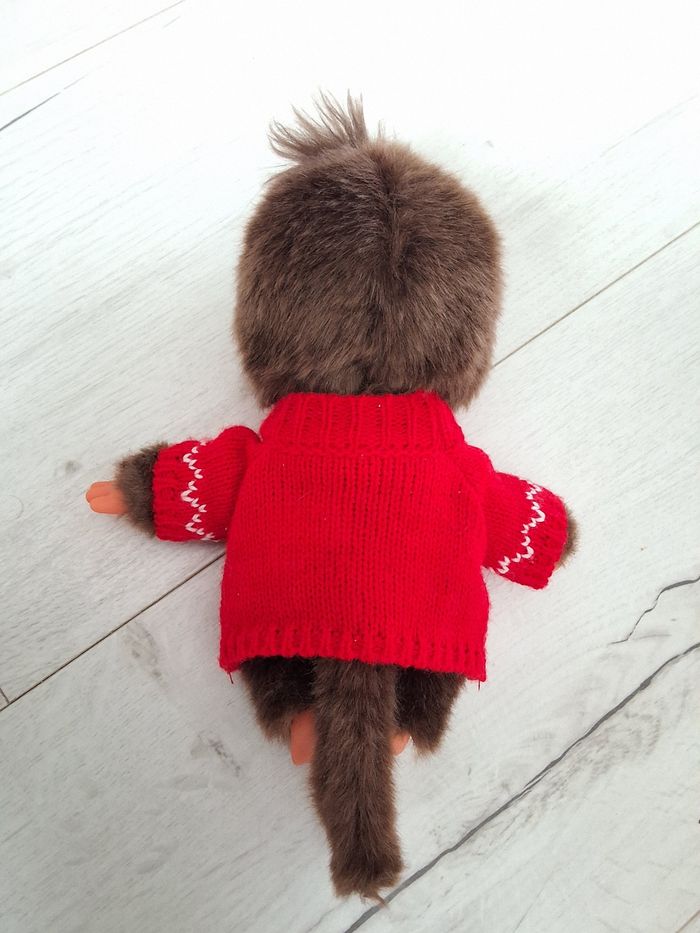 Peluche Mochhichi 20 cm fille pull rouge en laine cœur blanc Neuf - photo numéro 3