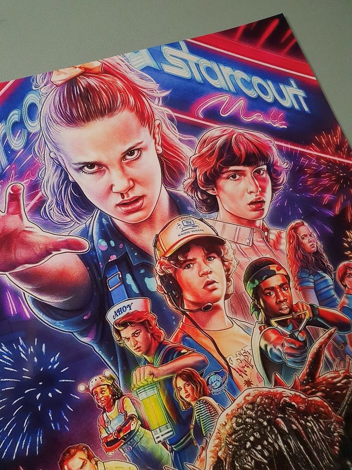 1 affiche /poster neuve. Illustration de stranger things sur papier photo /glossy /brillant de 180g. Format A4 21cmx29.7cm CADRE NON INCLUS. Renforcé dans une enveloppe pour protéger l'affiche. #poster #affiche #a4 #strangerthings #serie #retro #collection #deco