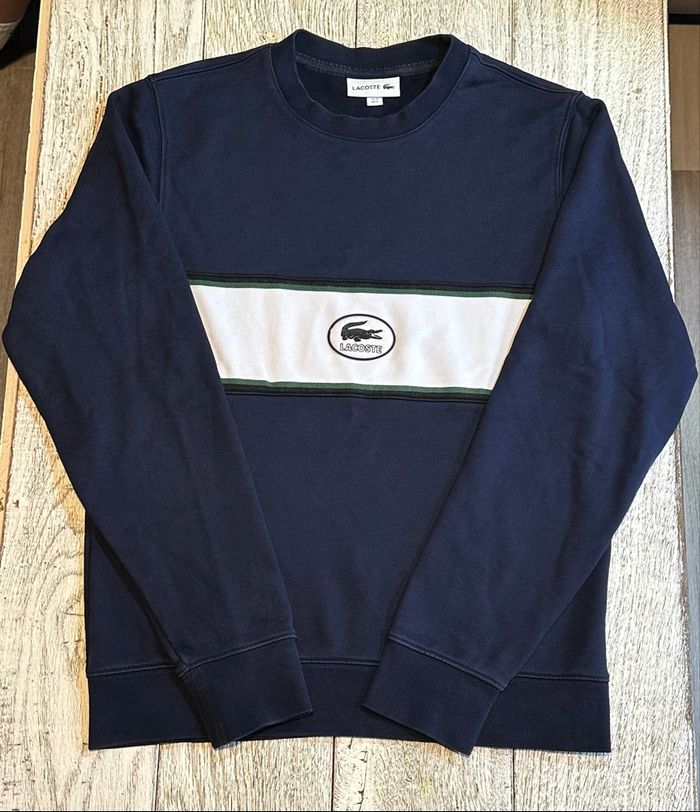 Sweat Lacoste col rond sweat-shirt hoodie molleton - taille S - homme - bleue marine - coton  - photo numéro 1