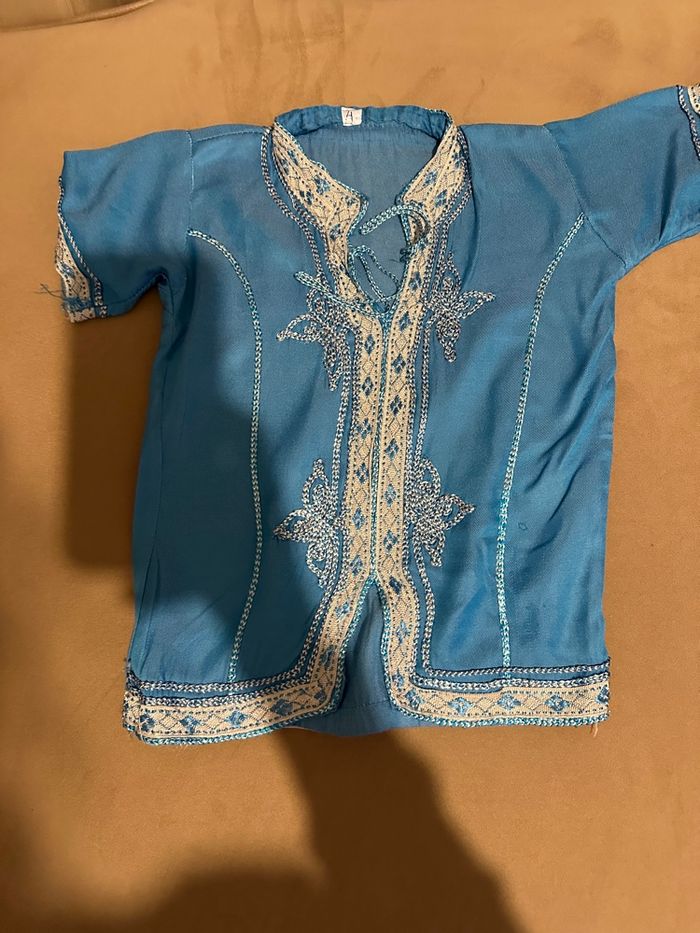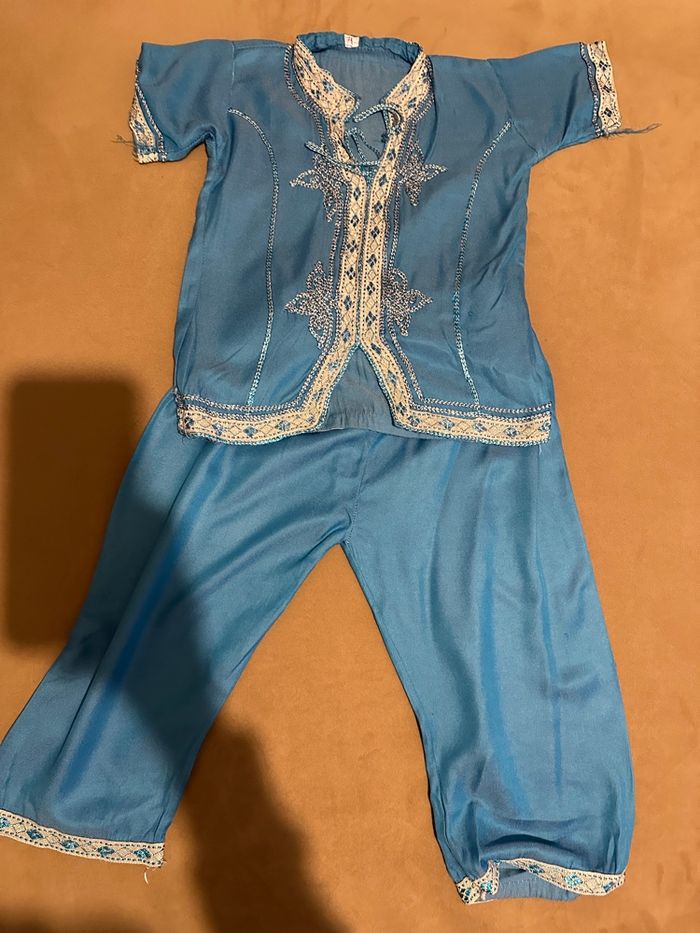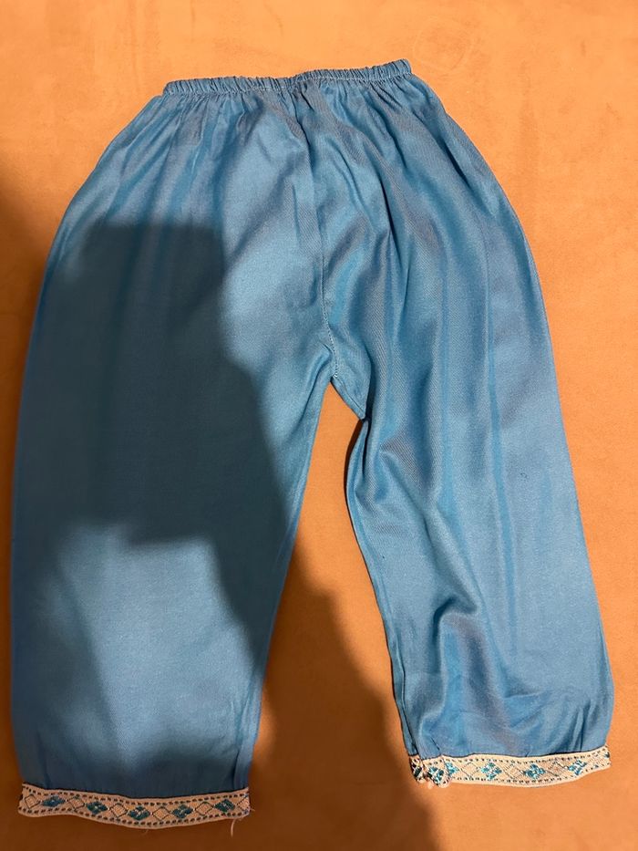 Ensemble oriental Pantalon et longue tunique Bleue ciel Taille 3 ans environ Très bon état Disponible sur Rouen et alentours ou envoi par colis