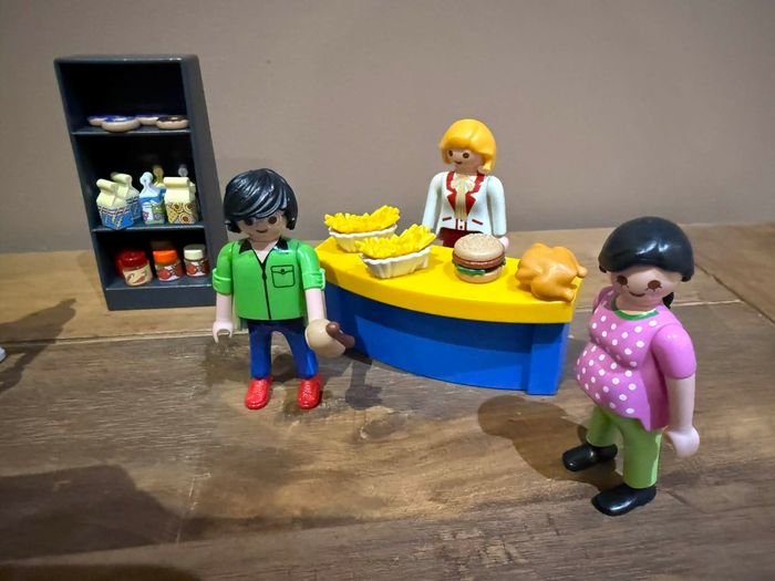 Lot playmobil stands de nourritures Très bon état Stands de nourritures avec accessoires, aliments 5 personnages Pouvant compléter un set, ou une maison