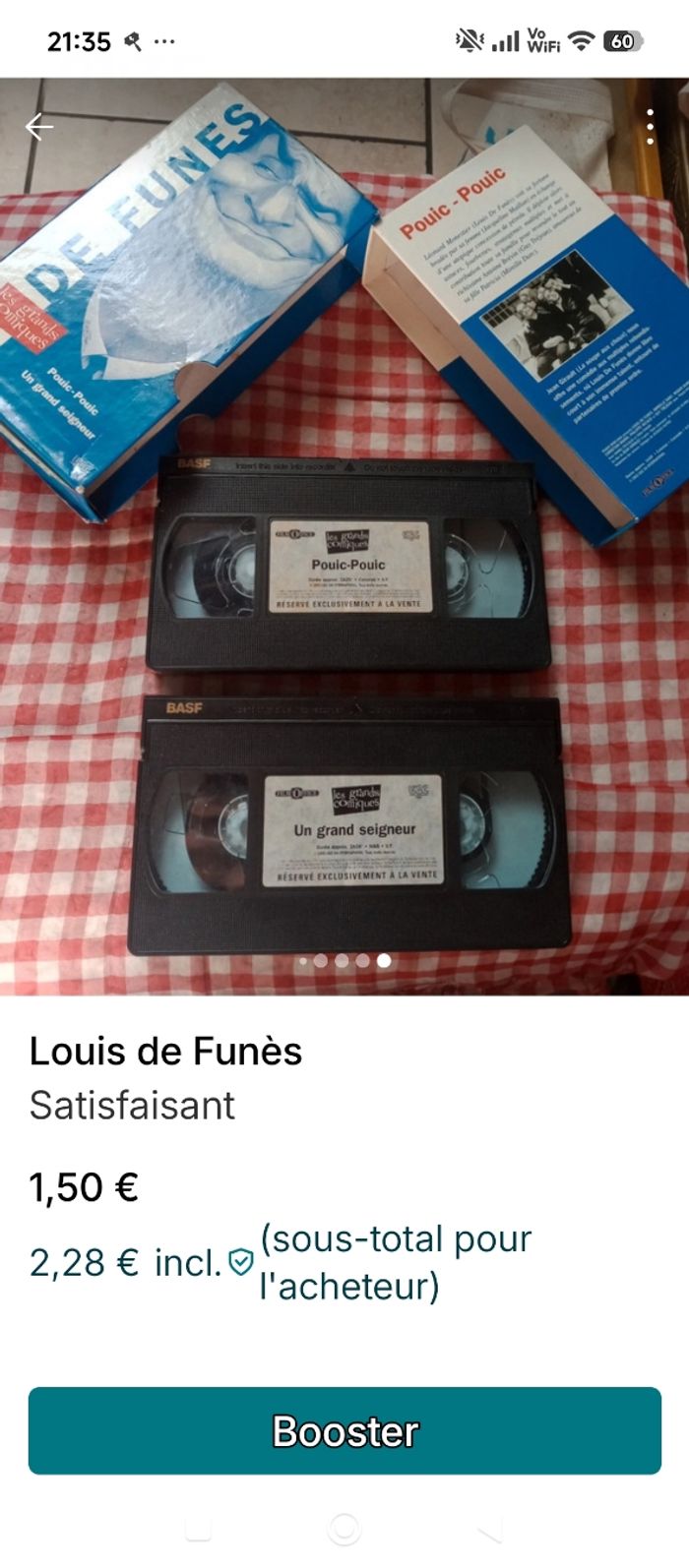 1 coffret de 2 vidéoscassettes Un grand seigneur et pouic-pouic Quelle signe de vécu sur la boîte sinon c'est en bonne état attention c'est pas des DVD c'est des vidéos cassettes