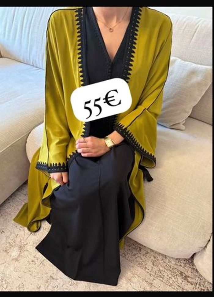 Ensemble 2 pièces composé d’une robe sans manches en crêpe de soie, fluide et chic et d’un kimono travaillé avec le savoir-faire du zwak lam3alam 🧵🪡🇲🇦 Parfait pour toute occasion. Mais ce n’est pas tout… le kimono se porte aussi seul : ✨ Avec un jean → moderne & décontracté ✨ Sur une robe → chic & féminine ✨ Avec un pantalon fluide → casual chic Taille; 38 à 44 Un seul ensemble… des possibilités infinies