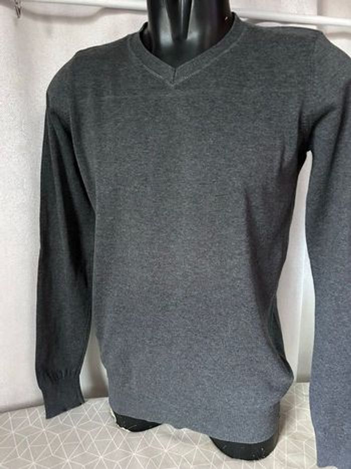 Pull gris anthracite encolure V pour homme Taille M Bizzbee 100% coton Carrure 40 cm Aisselle à aisselle 52 cm Longueur 69 cm