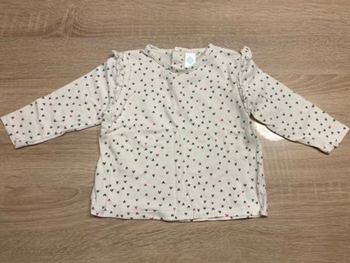T-shirt manches longues coeur 9 mois fille - photo numéro 1