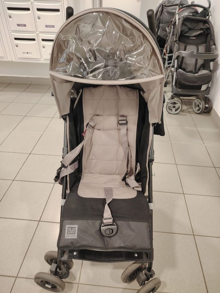 Poussette canne red castel en bon état qui se plis facilement, avec son ombrelle (parapluie), sa protection UV dans son petit sac.