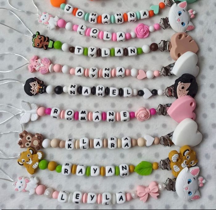Réalisation de vos attaches tétines a la demande M'écrire pour toute demande je vous ferais des propositions