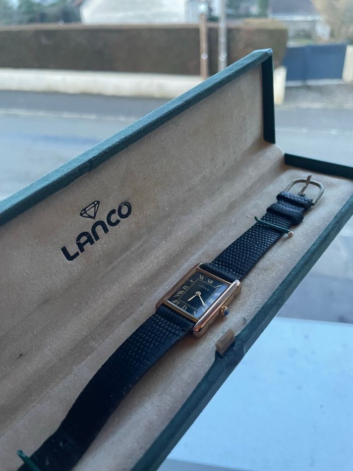 Montre mécanique Lanco, en parfait état de fonctionnement. Elle présente seulement des traces d'utilisation normales et est en bon état.