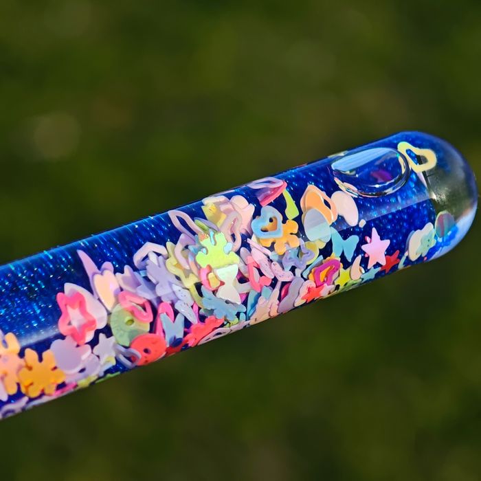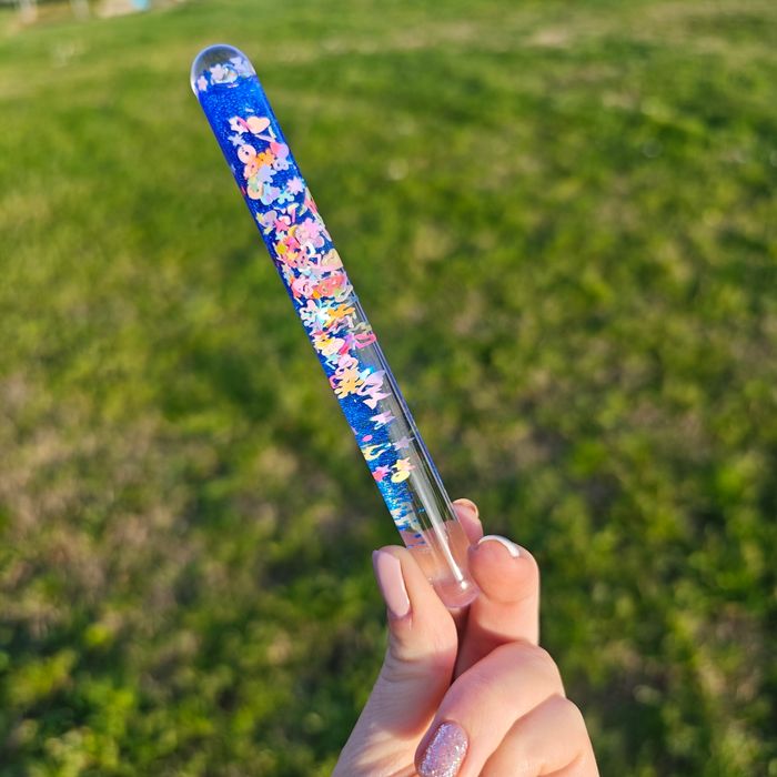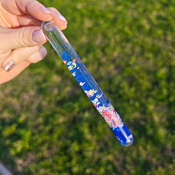 Bâton magique, jouet sensoriel. 🪄 Style Moulin Roty. Sécure & incassable. Microbilles et confettis nacrées multicolore. 🌈 Les billes glissent doucement le long du tube et les confettis dégringolent. 🎉 🎨 Couleur : 💙 bleu roi🤴🏼 📏 Dimension : 15 cm
