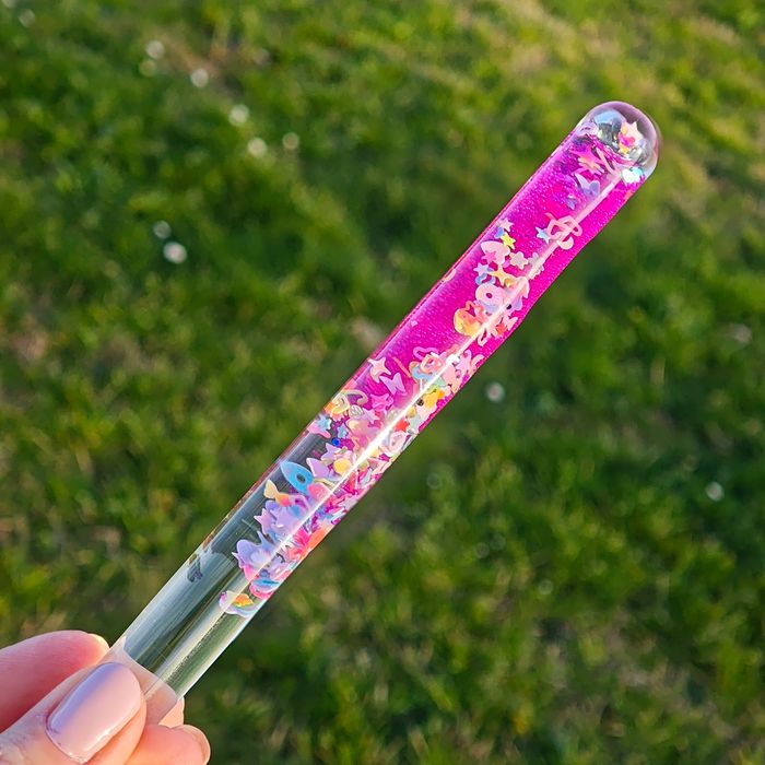 Bâton magique, jouet sensoriel. 🪄 Style Moulin Roty. Sécure & incassable. Microbilles et confettis nacrées multicolore. 🌈 Les billes glissent doucement le long du tube et les confettis dégringolent. 🎉 🎨 Couleur : 💗 Rose Framboise 📏 Dimension : 15 cm