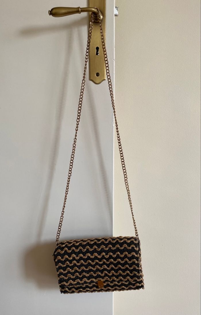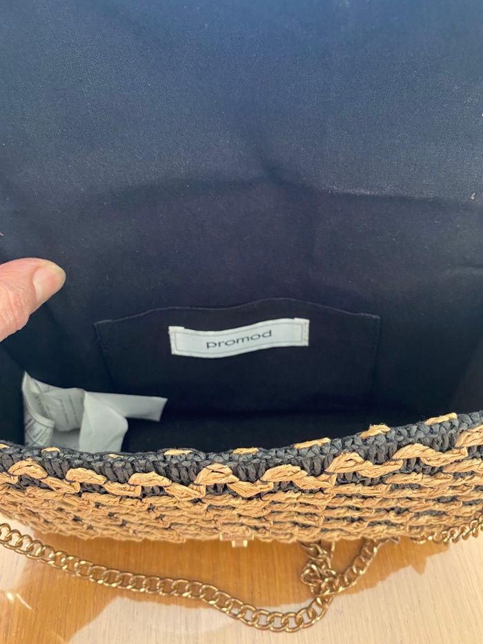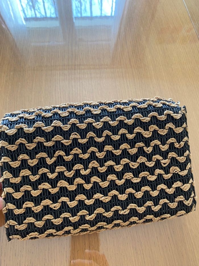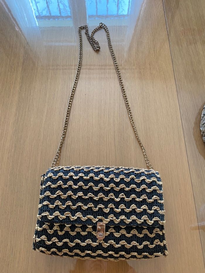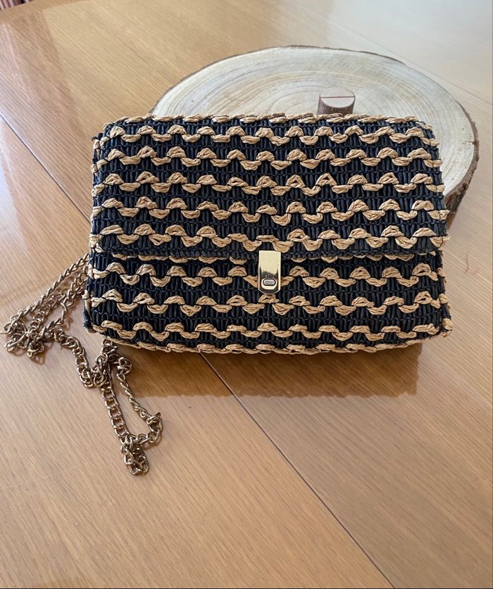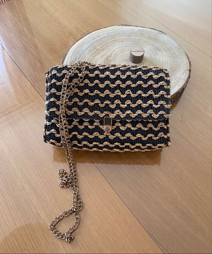 Sac à bandoulière en osier de chez promod Noir et beige 22m 16cm 6cm