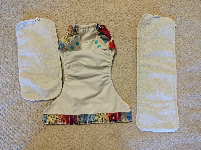 Couche lavable BumGenius, avec ses inserts en coton. Taille ajustable grâce aux boutons pression. Peut convenir dès la naissance et jusqu'à la propreté, selon le gabarit. D'autres couches lavables et inserts en vente dans mes annonces, possibilité de faire des lots Pour un envoi rapide, privilégiez Relais Colis.