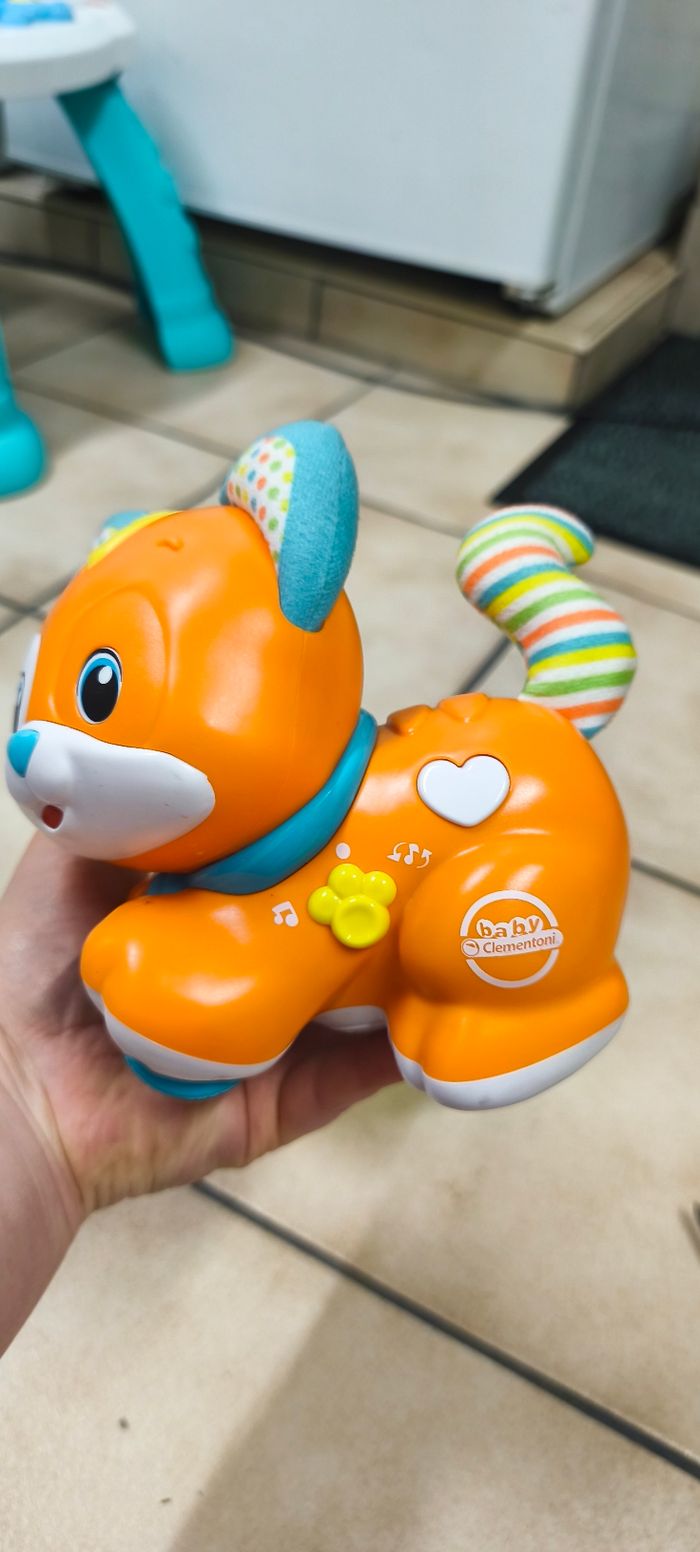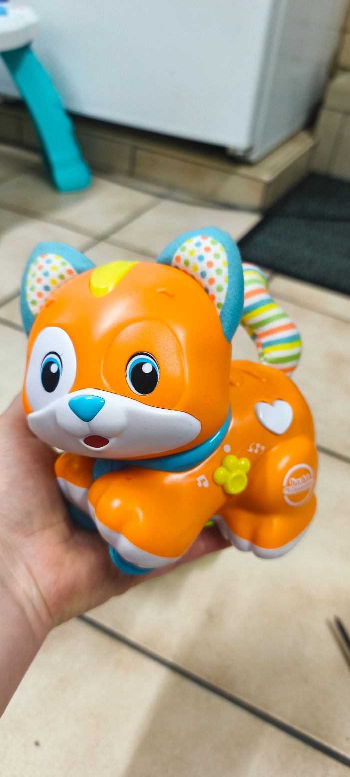 Minou miaou interactif de chez clementoni Brosse et biberon de lait permettent a bébé de prendre soin du chaton