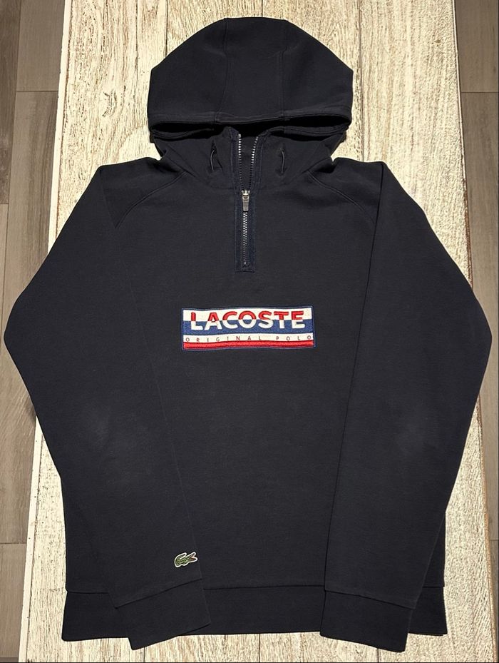 Sweat à capuche 1/4 zip Lacoste sweat-shirt hoodie manche longue *Brodé Lacoste original polo Vous avez aussi le crocodile brodé sur la manche droite Taille M Couleur bleue marine Homme Très bon état, qualité premium bien épais Deux élastiques aux extrémités du col pour resserrer la capuche 2 imperfections qui se voient quasiment pas dont un petit accrocs à l’arrière du dos en bas et une petite rayure sur la fermeture éclaire ( voir photo ) 68% coton et 32% polyester Détail sur le zip il est mentionné Lacoste (voir photo) Vous avez les dimensions en photos #sweat #sweatshirt #sweatacapuche #sweatlacoste #sweatlacostehomme #sweetàcapuchelacoste #lacoste #lacostevintage #lacosteoriginal #lacostesport #lacostehomme #lacostehoodie #hoodies #hoodie #hoodievintage #hoodieslacoste #hoodielacoste