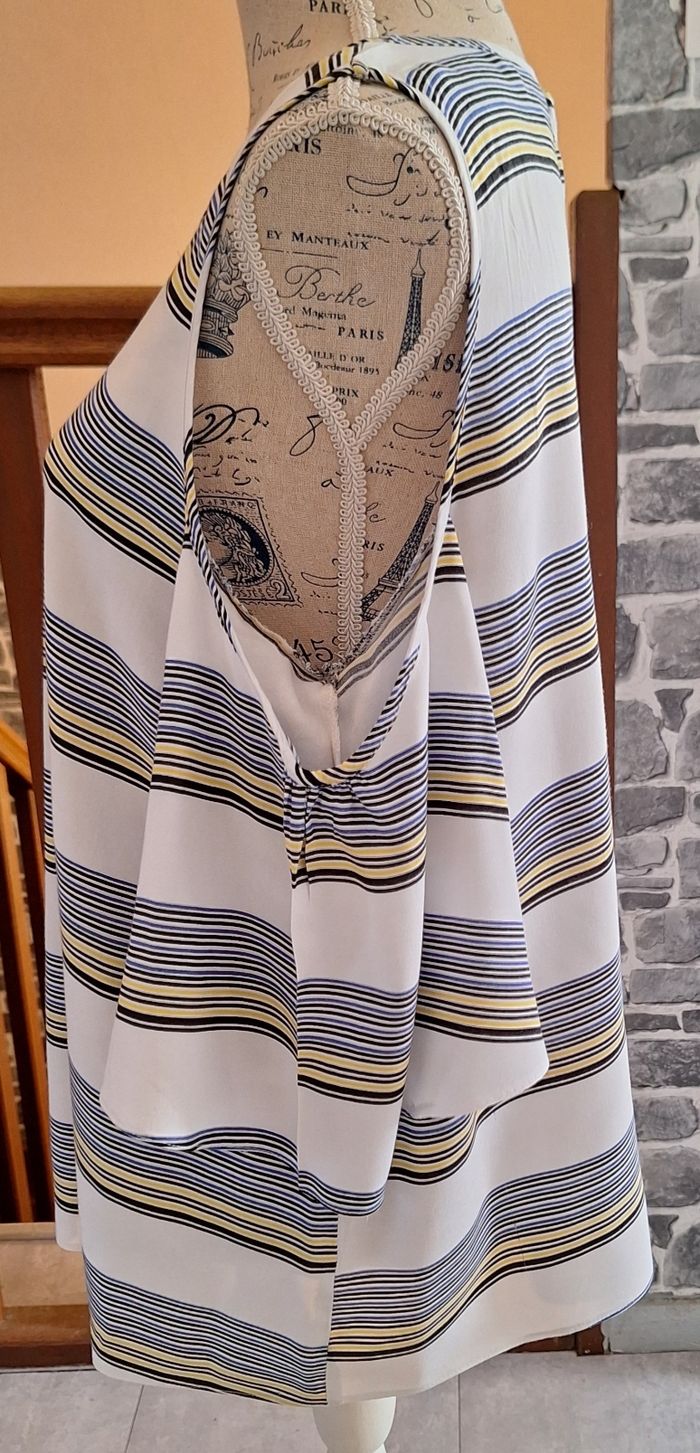 Blouse fluide avec les épaules dénudées blanche rayée bleu, noir et jaune - photo numéro 3