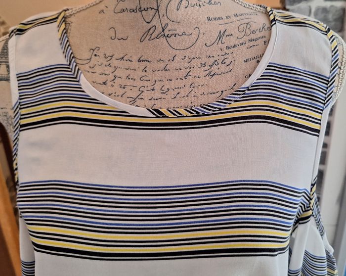 Blouse fluide avec les épaules dénudées blanche rayée bleu, noir et jaune - photo numéro 2