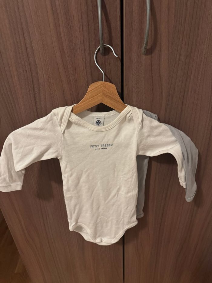 Veuillez trouver ci-joint le lot de 2 bodys neufs sans taches ni rien encolure américaine de chez le petit bateau