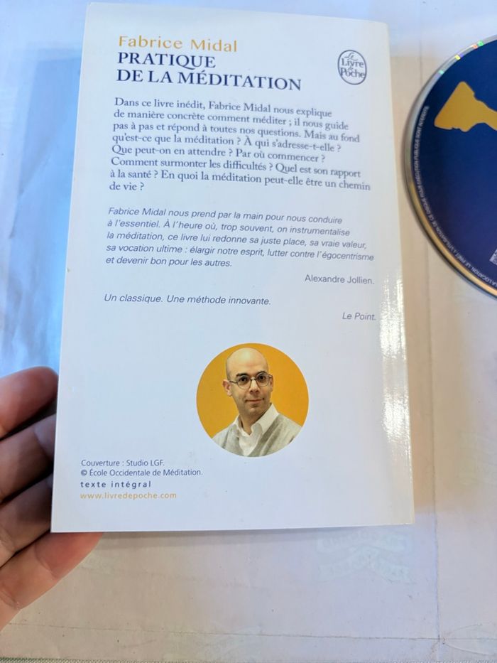 Livre & CD : Pratique de la méditation Auteur : Fabrice Midal Édition : Le Livre de Poche Découvrez la méthode de référence pour apprendre à méditer sans stress. Fabrice Midal, l'un des plus grands enseignants de la méditation en France, vous guide pas à pas pour retrouver calme et sérénité au quotidien. Ce que contient ce coffret : • Le livre complet : Une approche simple, loin des clichés, pour comprendre et pratiquer la méditation de pleine conscience. • Le CD inclus : 6 méditations guidées par la voix de l'auteur pour vous accompagner en temps réel. En bon état 💡 Optimisez vos frais de port : Pensez à créer un lot pour regrouper vos achats en un seul envoi ! 🔍 Retrouvez toutes les œuvres de cet auteur dans mon dressing via ce hashtag #midalbouquinaix #bouquinaix #FabriceMidal #Meditation #PleineConscience #BienEtre #DeveloppementPersonnel #Stress #LivreDePoche #Zen #SanteMentale