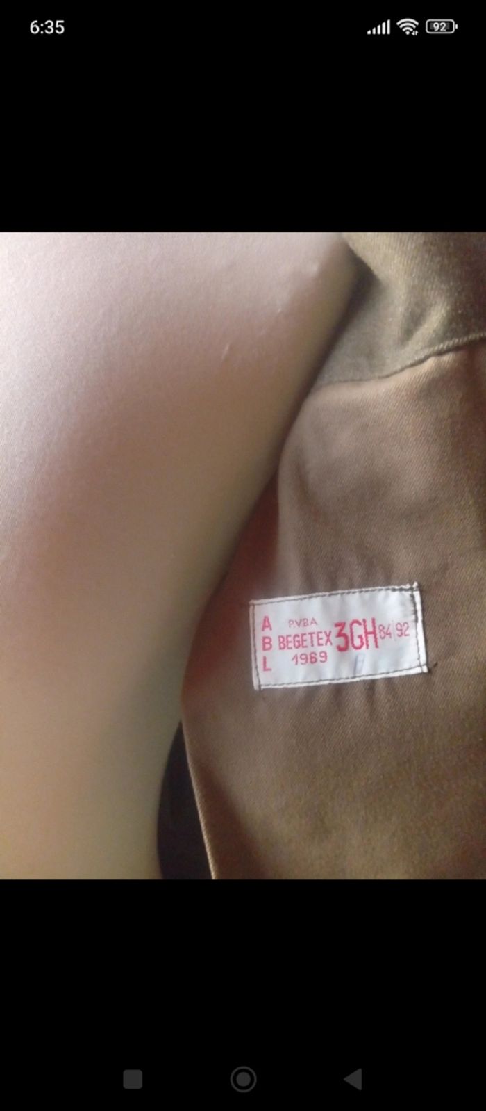 spencer belge ABL P.V.B.A Begetex 3GH année 1969 taille militaire 84/92 (S) couleur vert olive insigne sur l'épaule 3eme zone Liège symbole sur l'épaule sanglier mascotte belge tissu en laine boutons sous-pattes longueur 54 cm aisselle à aisselle 52 cm épaule à épaule 46 cm longueur manche 64 cm largeur épaule 18 cm pour collectionneur