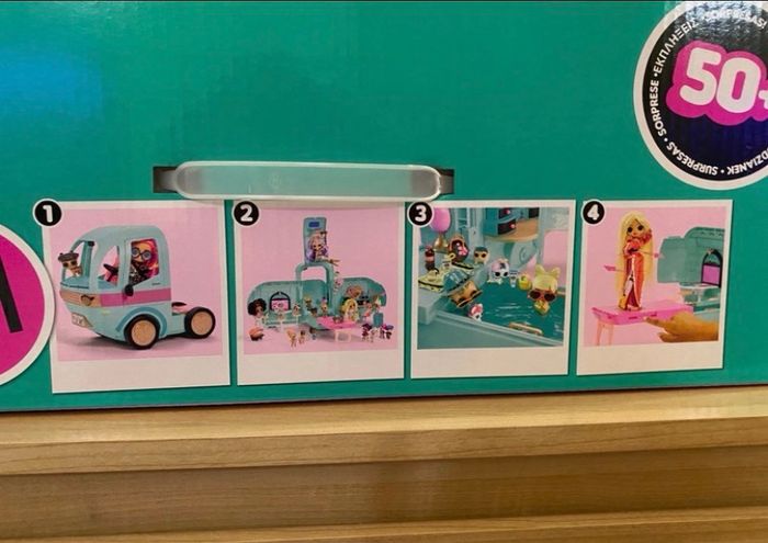 camping car glam n’go camper 4 en 1 poupées lol neuf - jamais ouvert - en parfait état envoyé bien protégé SET DE JEU 4 EN 1 : Ce jeu 4 en 1 comprend la voiture, la maison, la piste de mode et la piscine et plus de 8 aires de jeu 50+ SURPRISES Un frigo, un barbecue, des accessoires culinaires, une coiffeuse, des lits superposés, un support pour téléphone, des couvertures, des oreillers, du maquillage, une télé, des cintres, une feuille d'autocollants, et bien plus encore ! 360° PLAY : Détachez l'avant du set pour obtenir une voiture séparée avec un coffre qui s'ouvre pour un rangement facile et un stand D.J. élégant à l'arrière pour que VOS poupées préférées puissent s'éclater MAISON DE POUPÉE : La partie arrière du set de jeu se transforme en une magnifique maison de 60×90 cm meublée, comprenant plein d’espaces de jeu : un toboggan et une piscine, une piste de mode, une coiffeuse, un café, des lits superposés, des WC et un barbecue JEU D'EAU : Versez de l'eau dans la piscine pour que vos poupées glissent du toboggan à deux étages en faisant des éclaboussures et nagent tout en profitant de la chaleur du soleil CONVIENT À TOUTES LES TAILLES DE POUPÉES : Convient aux poupées L.O.L. Surprise O.M.G., aux Tweens et aux poupées Tots