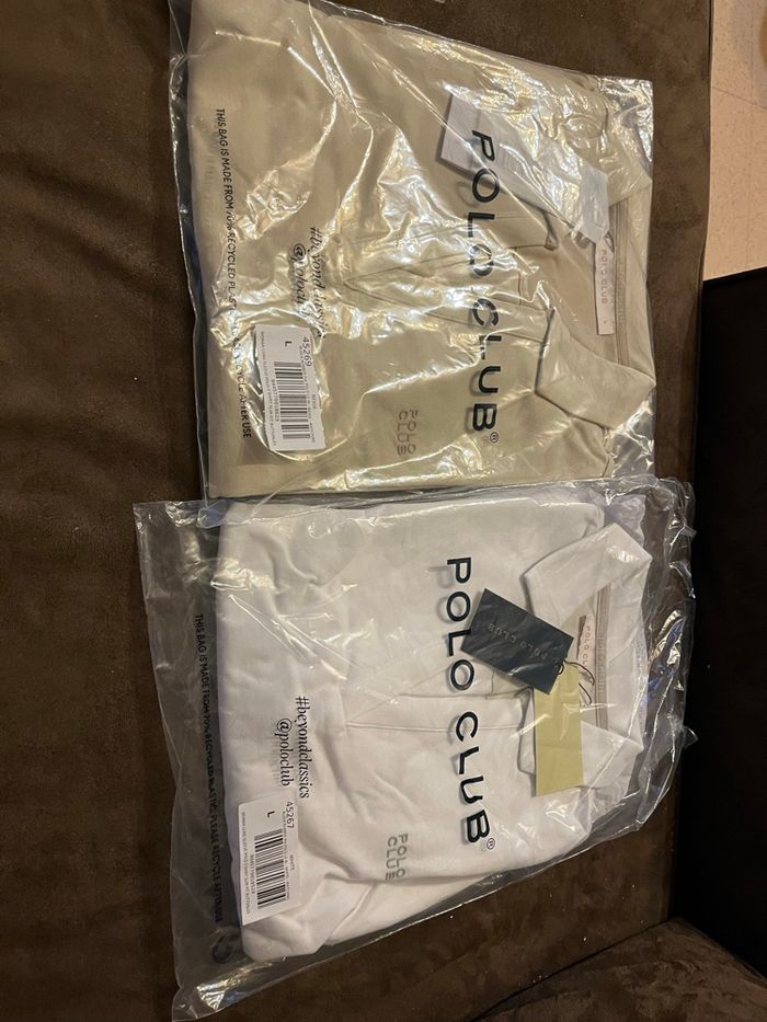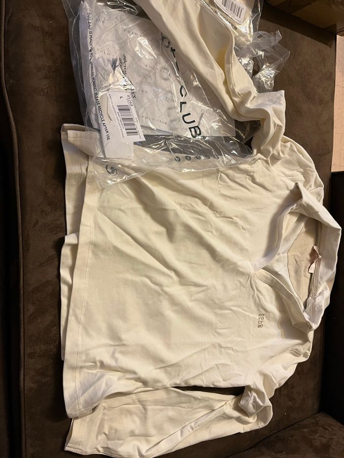 Neuf et emballé Un seul d’ouvert pour essayer Acheté sur le site polo club 1 beige 1 blanc 1 crème Manches longues Col V Taille L
