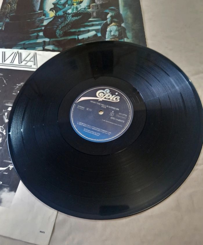Bonjour, je vends cet album vinyle du groupe Viva, intitulé "What the Hell is going on !". Disque édité chez Epic en 1981. Le disque est en très bon état . La pochette est propre, avec de légères marques d'usage sur les tranches et les coins. L'insert d'origine avec les photos du groupe est bien présent. Complet (Pochette + Insert + Disque). ​ #vinyl #vinyle #hardrock #80s #viva #heavy-metal #collection #33tours #1981