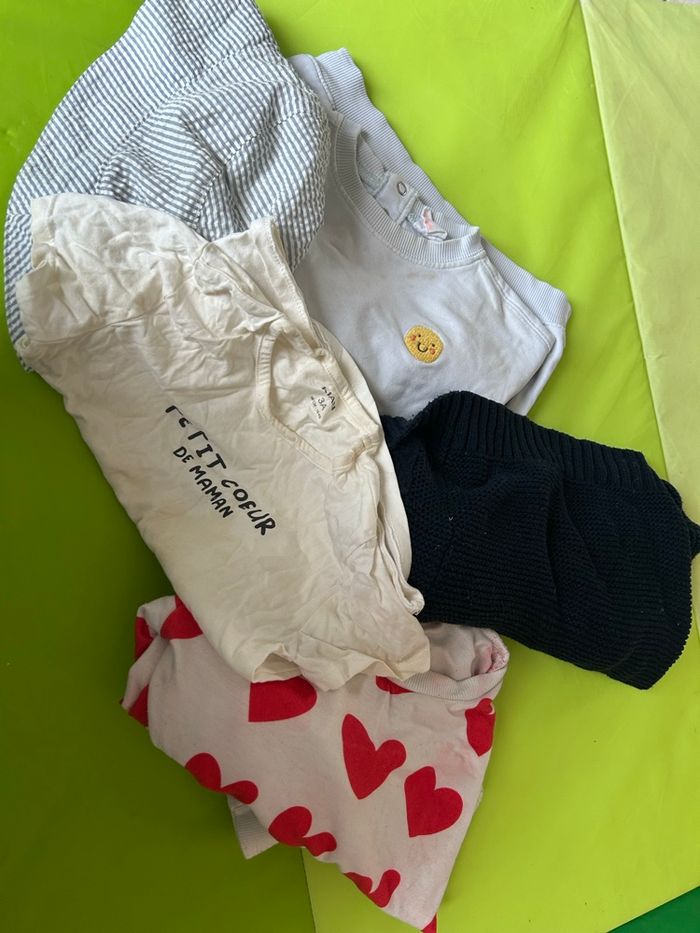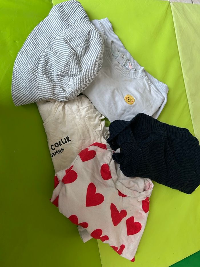 Lot vêtements enfant – 2/3 ans – État satisfaisant Je vends un lot de vêtements pour enfant, taille 2/3 ans. 1 pull 1 gilet 2 pyjama 1 t-shirt 1 chapeau ✔️ Idéal pour le quotidien ou la crèche ⚠️ État satisfaisant : les vêtements présente des traces d’usures ➡️ Parfait pour vêtements de rechange ou activités