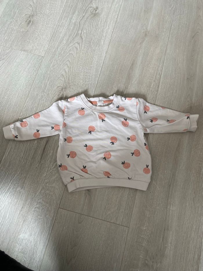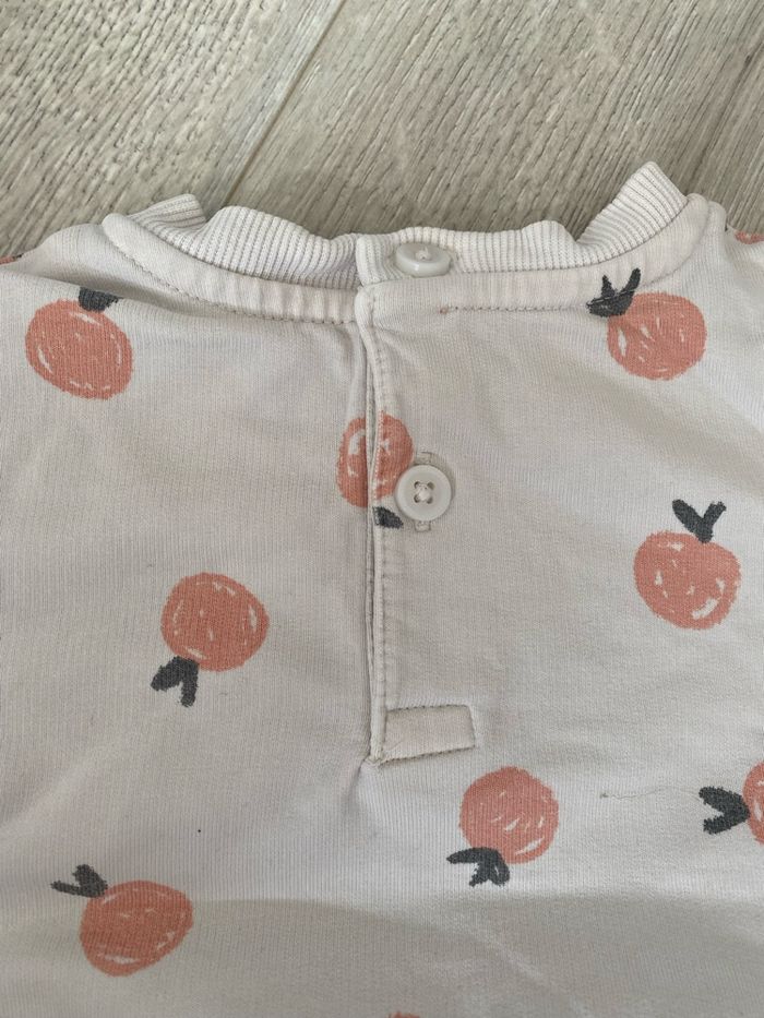 Sweat blanc-crème motif fruits Tex baby Très bon état Boutons sur l’arrière Taille 6 mois