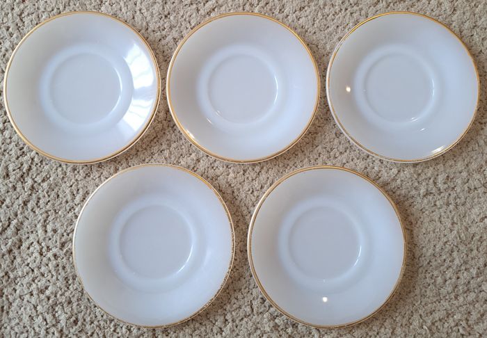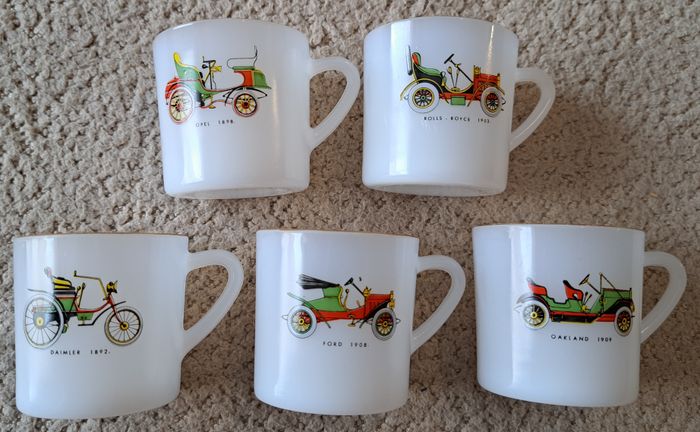 🍽 Lot de 5 tasses et sous-tasses en opaline décors voitures anciennes - Arcopal France - photo numéro 1