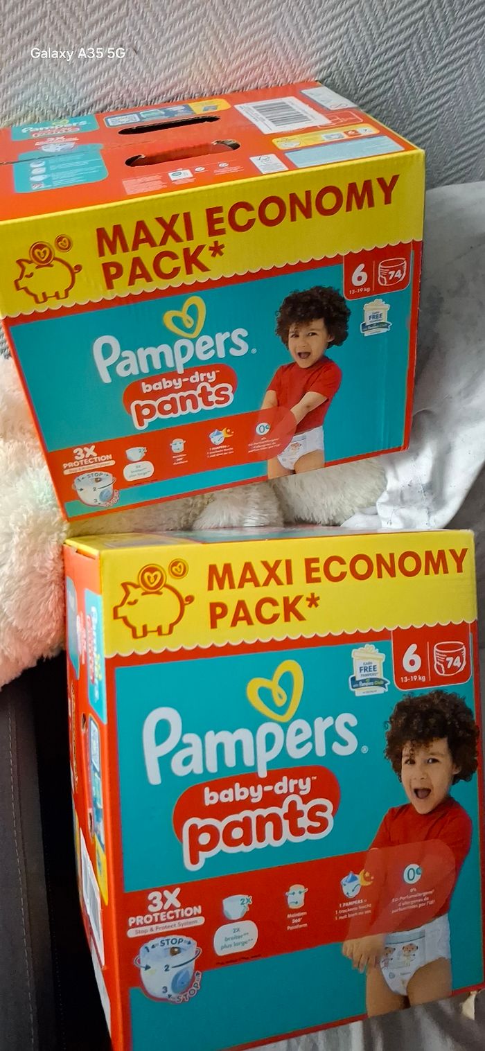 Lot de deux cartons couches pampers pants taille 6 - photo numéro 1