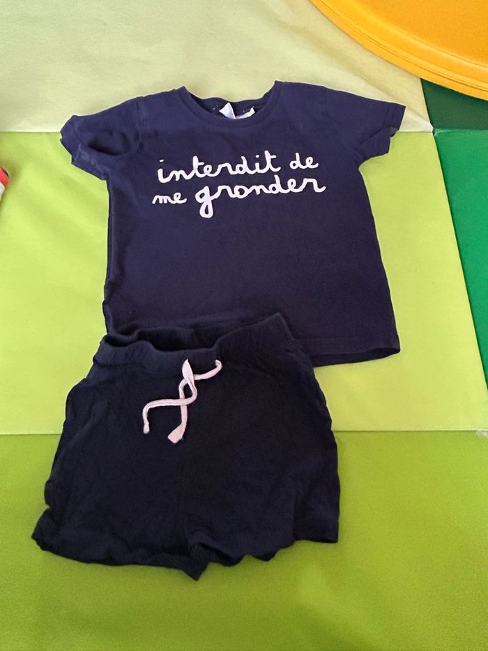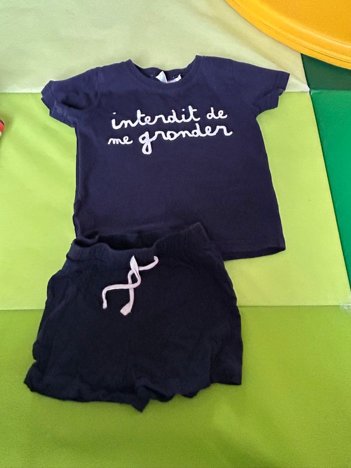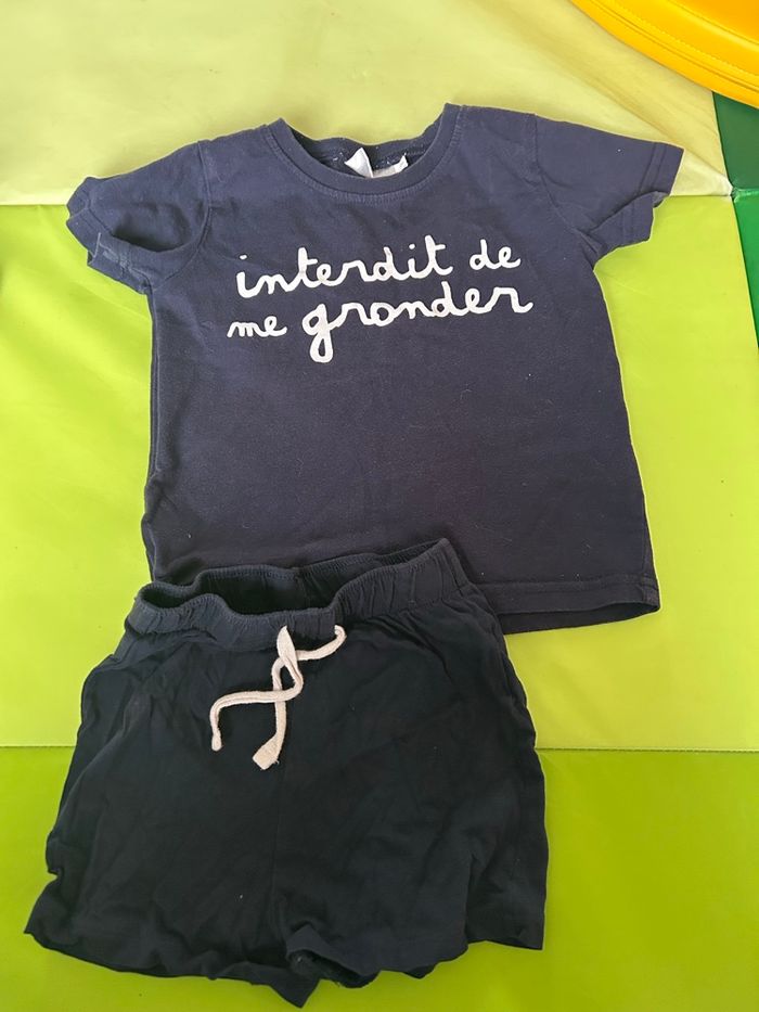 Ensemble été enfant – 24 mois – T-shirt “Interdit de me gronder” + short Kiabi 2 ans Je vends un ensemble d’été pour enfant comprenant : • T-shirt “Interdit de me gronder” – taille 24 mois • Short Kiabi – taille 2 ans Convient pour un enfant portant du 24 mois / 2 ans selon la morphologie. Tenue idéale pour l’été, confortable et facile à porter au quotidien. ✔️ État : bon état #ensembleenfant #ensembleete #24mois #2ans #kiabi #vetementenfant #tenueete #occasion #bonetat