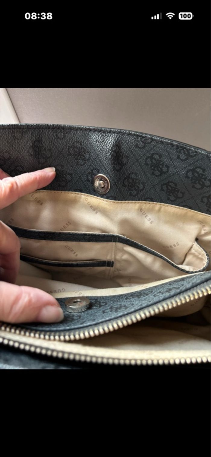 Magnifique sac à main Guess. Dimensions 35 x 25. Nombreuses poches zippées. Très bon état car très peu servi. Manque un petit bout de revêtement sur une anse mais non visible porté.