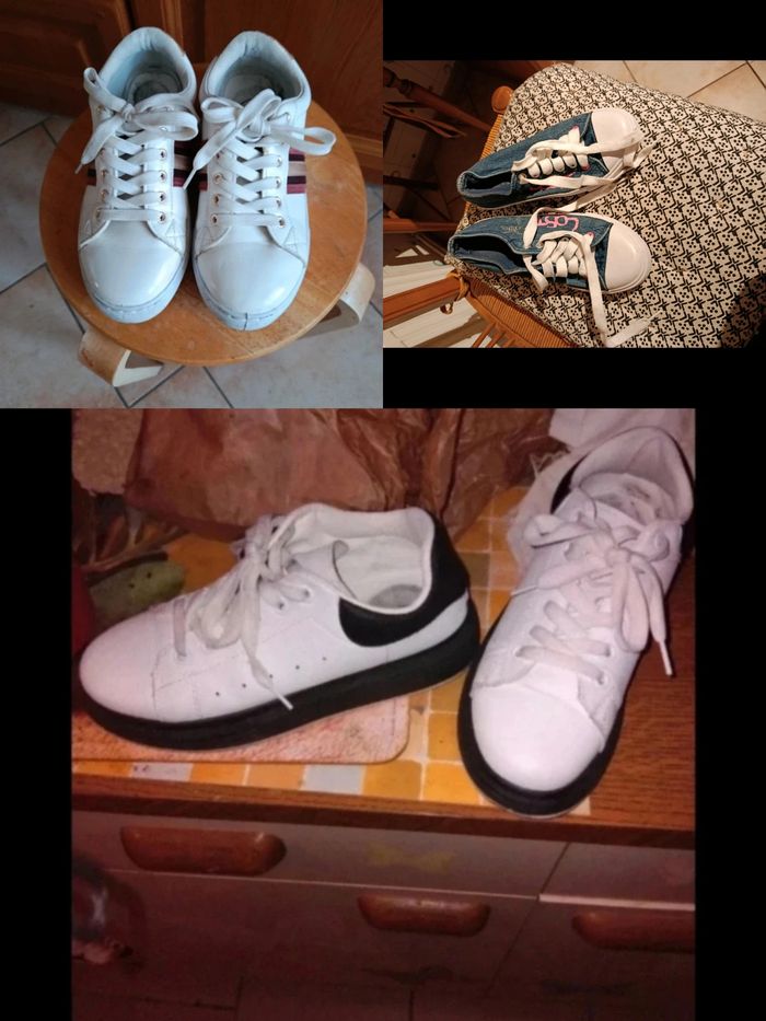 2 paires en simili Extérieur impeccable Intérieur un peu sale au talon 1 Paire en toile en parfait état